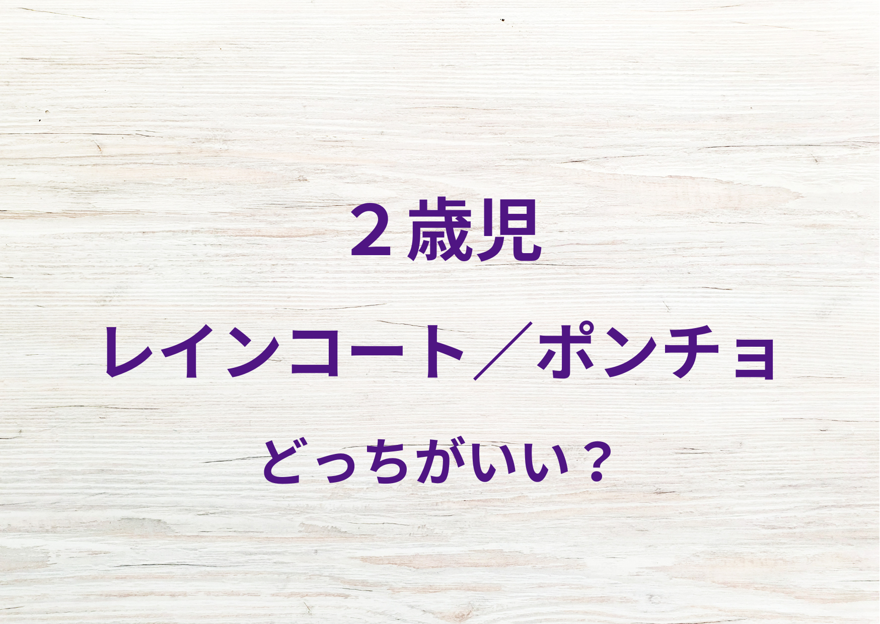 この記事では、2歳向けに レインコートとポンチョの違いを、保育園・外遊びなどシーン別にわかりやすく比較します。